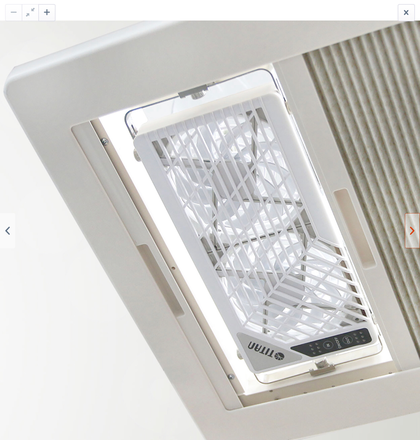 Vorteil: Das Dachfenster kann geöffnet und geschlossen werden, ohne den Lüfter zu entfernen. Die beiden Ventilatoren (ø 14 cm) sorgen mit ihrem starken umkehrbaren Luftstrom (Be- und Entlüftung) für schnelle Wärmeableitung und regulierte Zirkulation. Der Luftstrom lässt sich via Fernbedienung in 6 Geschwindigkeits-stufen regulieren. Der Lüfter verfügt jetzt über einem Überspann-ungsschutz und kann problemlos im 12-Volt-Bordnetz betrieben werden. Zum Öffnen und Schließen des Dachfensters muss der Doppellüfter NICHT demontiert werden!