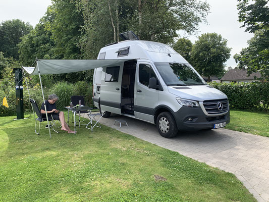 Statt Markise. Das wir keine Markise kaufen war uns immer klar. So viel Gewicht dauerhaft rumschleppen für ein Paar Stündchen Nutzzeit rechnet sich nie - wir sind Nordlandfahrer. Gute Entscheidung.