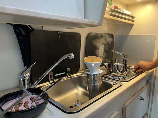 Ohne 230 Volt. Mit Gas. Bialetti oder Melitta ? Beides ausprobiert. Melitta hat gewonnen. Klar - It‘s OWL !!! Den Kaffee mit den 1 Portions Filter direkt in die Thermostasse brühen. Perfekt.