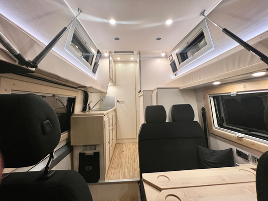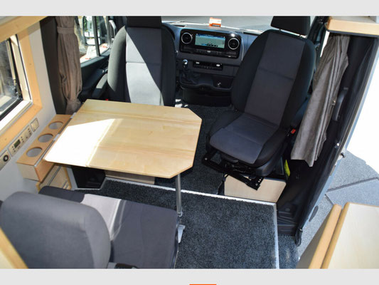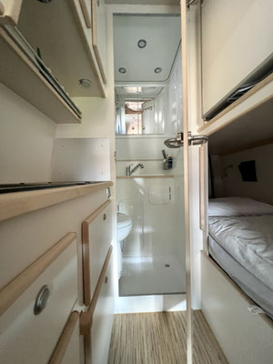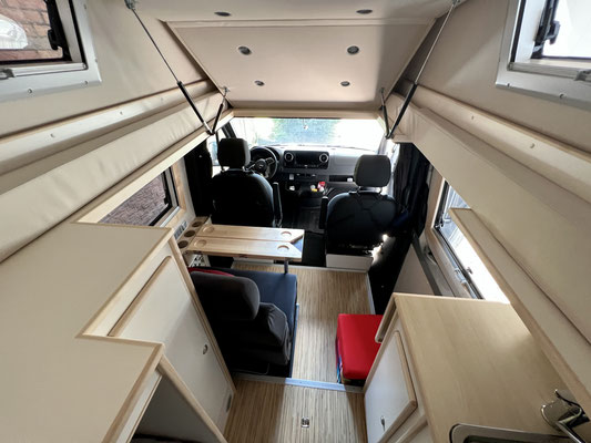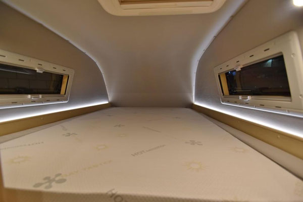 2 Schlafplätze im Hochbett, 1 Schlafplatz im umgebauten Cargoraum;