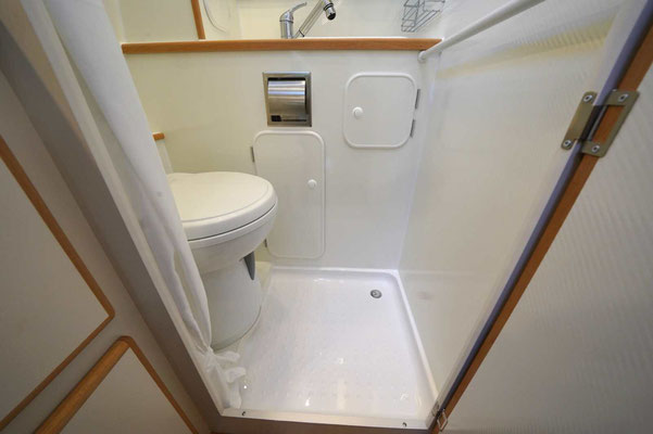 Nasszelle mit Dusche, Cassettentoilette und Waschtisch;