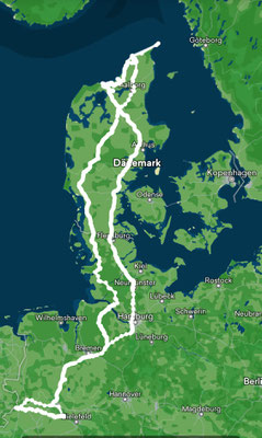 /1/Reiseroute /2/ Zwischenstop Hobro /3/ Haverslev Havn /4-5/ Thorup Strand /6-8/ Grönne Strand /9-11/ Svinklöv /12/Rödhus Strand /13/ Rubjerg Knude /14-15/ Hirtshals Havn /16-17/Skagen /18-19/ Rubjerg Knude /20/ Tornby /21/ Aida auf der Elbe bei Wischhafen