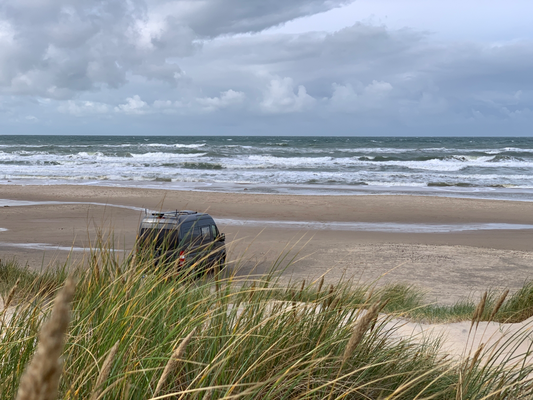 Das Wetter in Vorupör meinte es nicht immer gut mit uns. Sturm! Es wackelt. Wir stehen 3 Nächte und 2,5 Tage mit durchlaufender Truma und Kühlschrank. Die Solarkollektoren konnten nichts liefern - zu bewölkt. Die Batterie ist auf 54%.