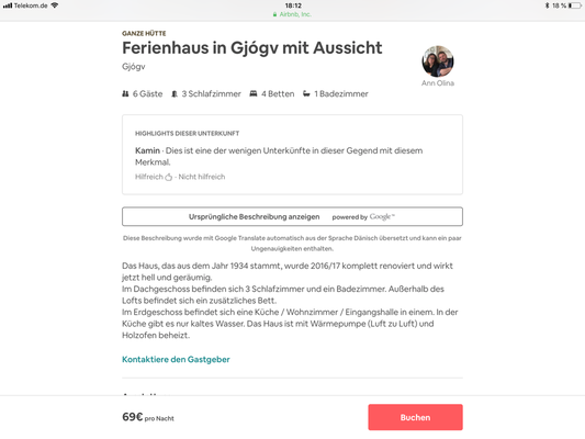 Uhr) haben wir über Airbnb ein Ferienhaus in Gjogv gemietet.