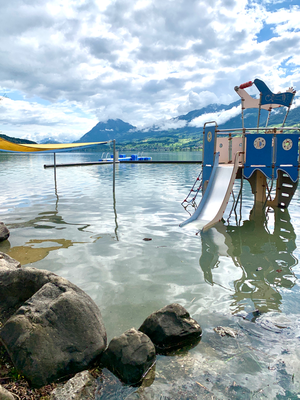 Regen, Starkregen, Hagel - überflutete Seen. In den Alpentälern hängt das Wetter fest.