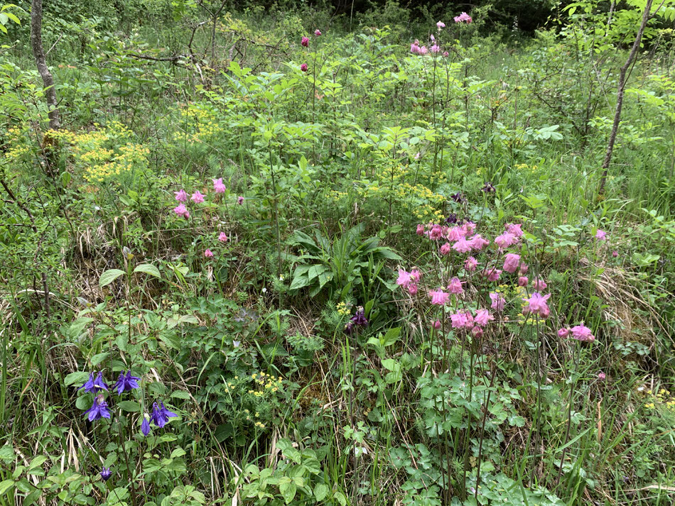 Christi Himmelfahrt 2020 in Förrenbach - eine Waldlichtung mit dichtem Akelei Bestand